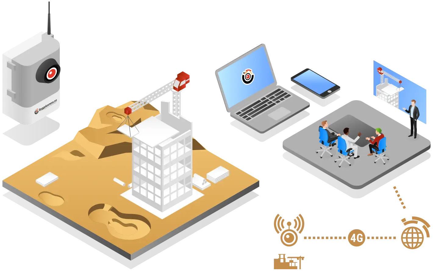 Byggekamera monteres med god oversikt over prosjektet, og når kameraet har strøm kobler det seg automatisk opp mot systemene våre og de lekre nye kundesidene våre!